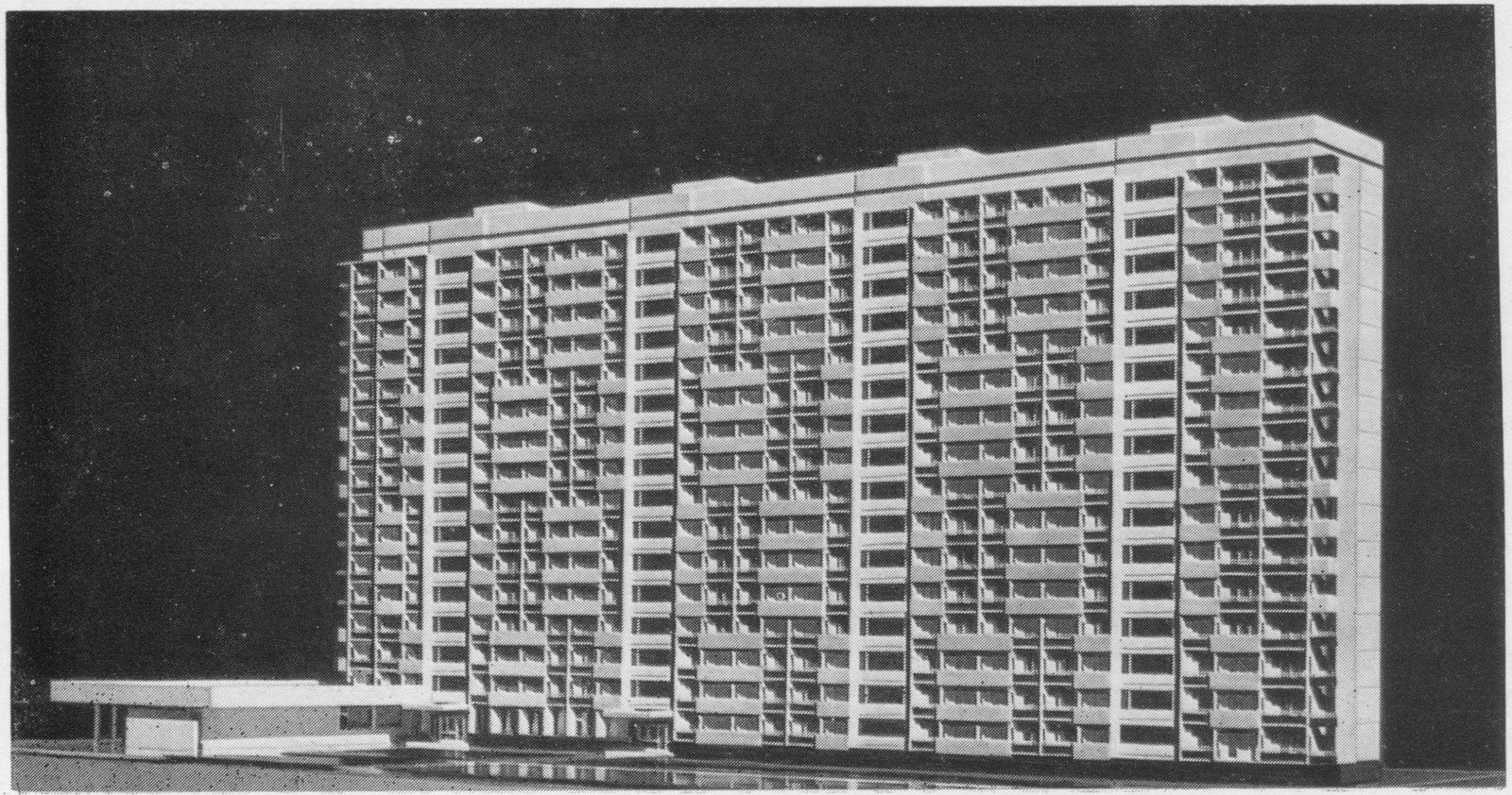 16-этажный четырехсекционный панельный жилой дом.